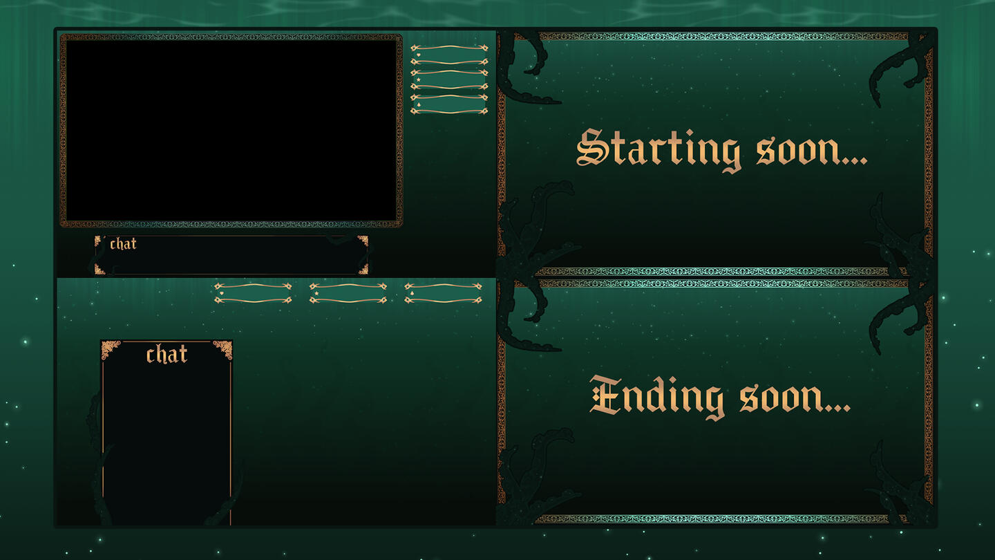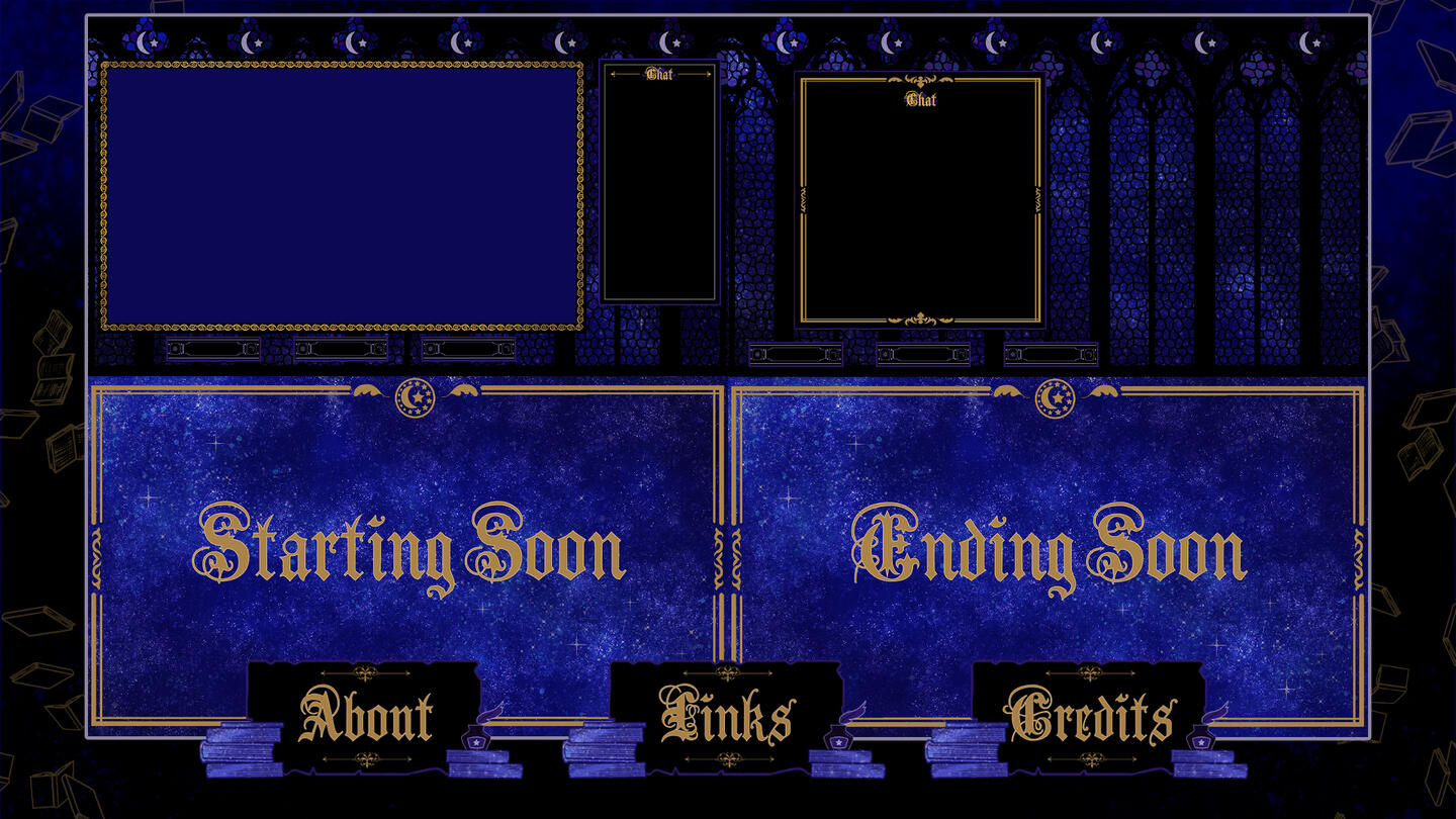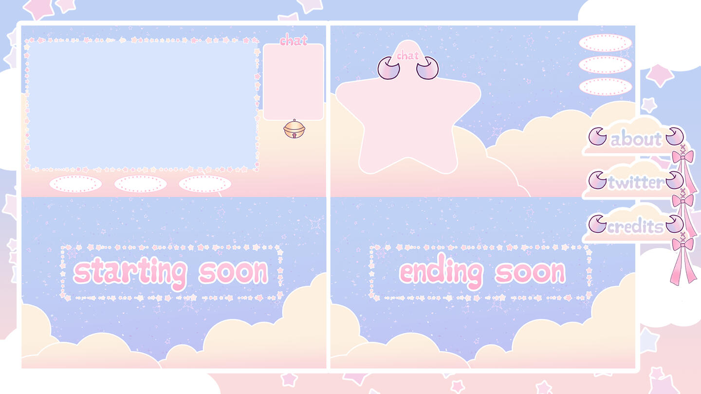 a package that consists of start/end/brb screens, a streaming overlay, a chatting overlay, and a set of panels